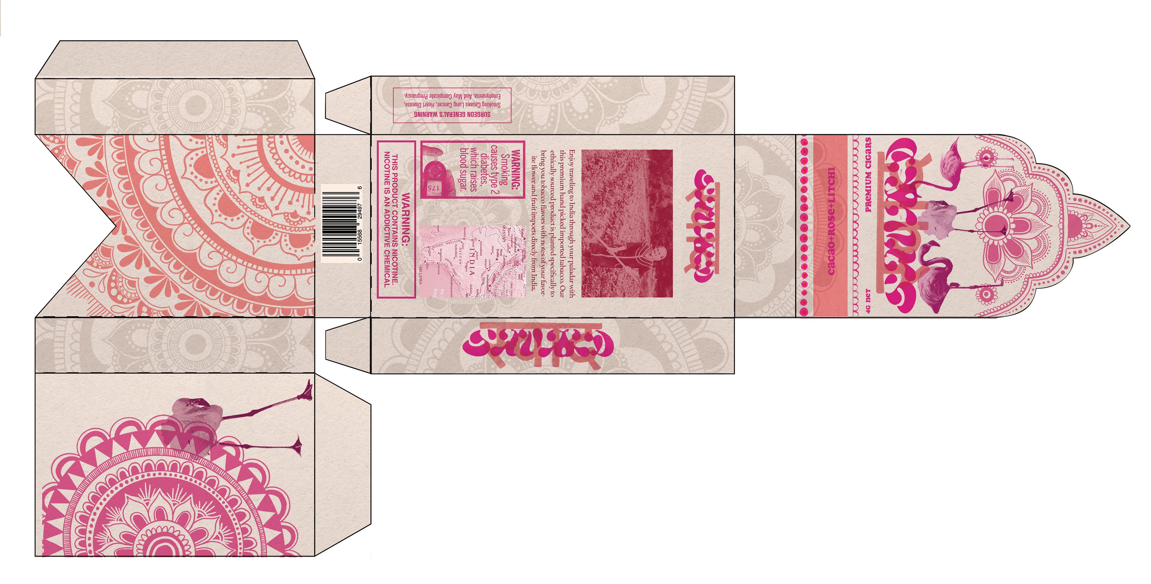Through these bright and colorful packages, we get to explore the flavors and colors that India must share with the world. India is ranked the #2 country in tobacco exportation and this project honors their tradition, bright culture, and informs the consumer on other products that India brings to the world. The project is assembled by 3 mixes of flavored tabaco in the form of loose lief, shisha, and a pack of 3 cigars.