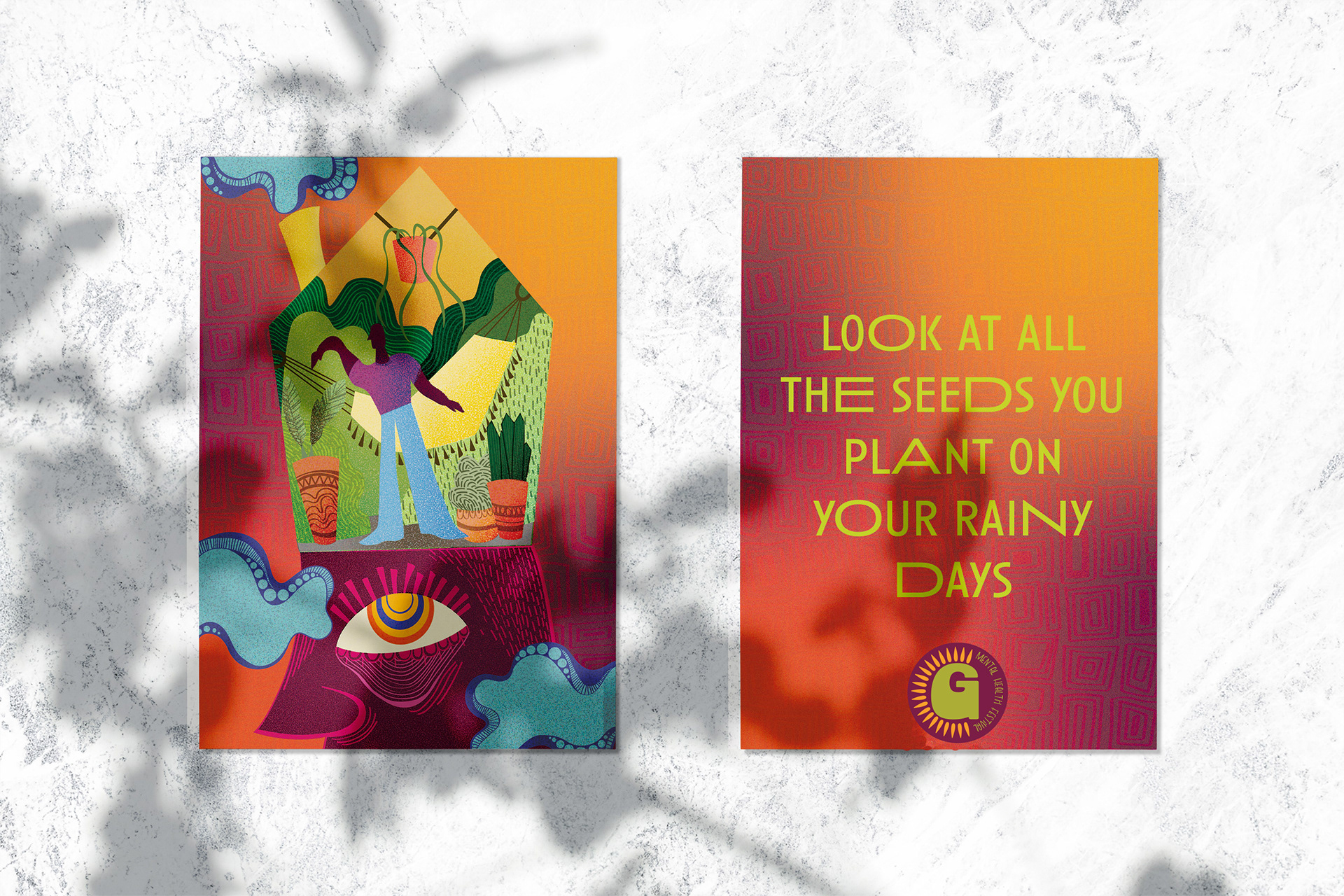 Grow: Mental Health Festival is a festival focused on advocating and educating people on mental health struggles. With speakers, resources, activities, and gifts the goal of this festival is to bring awareness not only about the struggles young adults and adults go through but also to promote treatment and advocacy for these groups of people. Because the main audience for this festival is young adults and adults the illustrations are a more modern approach while also bringing in fun colors and textures to embody the atmosphere of a more relaxed and fun environment while also being educational.